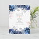 Navy and Pink with Silver Foil Floral Wedding Invitation