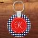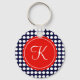 Navy and Red Polka Dots Custom Initial Key Ring