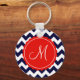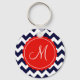Navy blue and white zig zag stripes with a pop of blod red for a classic, nautical look.  Personalise with any initial.