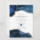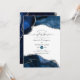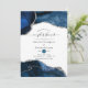 Navy blue and faux silver glitter agate stone couples shower invitation with a list of hostesses on the back.
