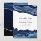 Navy and faux silver glitter agate stone wedding save the date card with elegant typography customisable to your event specifics.