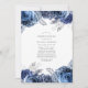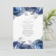 Navy and white floral Celebration of Life invitation with silver faux foil and elegant typography.
