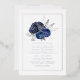 Navy blue and silver watercolor postponed floral wedding update invitation designed to be quickly and easily customised to your event specifics.