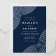 Modern wedding invitations featuring silver foil swirled geometric lines at the corners with a navy background. Personalise the navy and silver foil wedding invitations by adding your names and wedding details. The modern boho wedding invitations reverse to display a navy background.