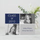 Graduation party invitations with a chic colour block background to frame your photos. Enter name, school and year on the front, and celebration details on the back.
