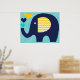 Navy and Teal Elephant Nursery Poster