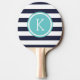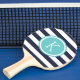 Navy and Turquoise Preppy Stripes Monogram Ping Pong Paddle