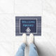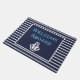 Perfectly chic, and classic navy and white with bright blue accent customisable Welcome Aboard doormat for your boat or marina slip