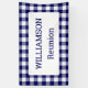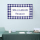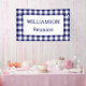Help guests find your party with a custom banner featuring a classic navy blue and white buffalo check border with your text in a white rectangle in the centre. Perfect for a family reunion, barbecue, or picnic. Personalise it in the sidebar.