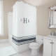Navy and White Classic Stripe Border Monogram Shower Curtain