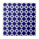 A bold, graphic pattern of interlocking navy and white diamond shapes. The white diamonds each contain a small dark blue diamond making navy the dominant colour of the geometric design.
