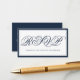 Classic elegant navy blue and white calligraphy script with minimalist simplistic plain style personalised wedding QR code response card. This product can be easily personalised. If you need help with the customisation of the product or need matching products kindly please contact me via Zazzle.