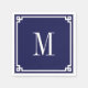 Decorative dark navy blue and white Greek key style square border paper napkins.