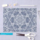 This is my Loergann mandala design in white over a Whale Shark background. Whale Shark is a dark, navy blue shade and gives a natural contrast to the design.