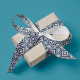 Add coastal Mediterranean charm to your gifts with our summery patterned ribbon. Inspired by the traditional azulejo tiles of Spain and Portugal, this grosgrain ribbon features an intricate geometric pattern in breezy navy blue, sky blue and crisp white. Pair with solid or striped white, navy or medium blue wrapping paper for a chic presentation.