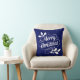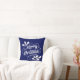Vintage Navy Blue and White Christmas Typography throw pillow. Merry Christmas typography, cheerful, festive, fun swirling script typography enhanced by holly and berries. Matching products available. Contact the designer at: cheryl@cheryldanielsart.com for help or to request this design on another product.