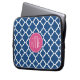 Navy and White Quatrefoil Pattern Custom Monogram Laptop Sleeve