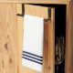 This simple, elegant kitchen towel will add a personalised touch of style to your kitchen! Navy blue stripes and your initial in modern script appear on a white background.