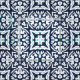 Inspired by the traditional azulejo tiles of Spain and Portugal, this intricately patterned fabric features a geometric design in navy blue, sky blue and white. Perfect for Mediterranean style decor, beach houses, and coastal style.