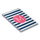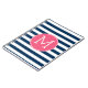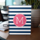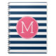 Navy and White Striped Pattern Hot Pink Monogram Notebook