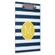 Navy and White Striped Pattern Yellow Monogram Clipboard