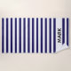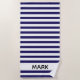 A striking striped beach towel with navy and white stripe pattern. Personalise with your name.