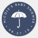 Navy and White Umbrella Baby Shower Classic Round Sticker