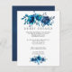 Navy indigo and white floral wedding guest details cards designed to be quickly and easily customised to your event specifics.