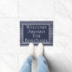 Perfectly chic, and classic navy and white Welcome Aboard The _________ doormat for your boat of marina slip customisable with your boats name