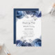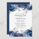 Navy and white floral long distance bridal shower by mail invitation with accents of silver.