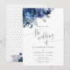 Navy and white flowers handwriting typography wedding invitations with accents of silver foil.