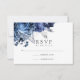 Navy and white flowers wedding RSVP cards with accents of silver.