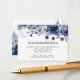 Navy and white flowers wedding accommodations cards with accents of silver foil.