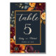 Elevate your wedding with these navy & fall watercolor flower table numbers. With their deep navy backdrop and vibrant autumnal blooms, this table decor exudes elegance and charm. Plus, it's fully customisable, allowing you to add a personal touch to your special day. Be sure to check out all of the matching wedding items in this collection!