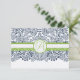 Navy Apple Green Grey Love Birds Wedding RSVP Card