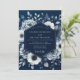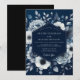 A rich navy backdrop showcases an opulent display of white and soft blue blossoms. Lush floral arrangements create a romantic and elegant atmosphere. This design evokes a feeling of sophisticated charm for a memorable occasion.