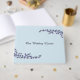 A lovely book for your wedding guests to sign. A light blue background with delicate branches of navy blue blossoms. On front and back.