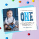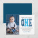 Modern, simple and elegant boy first birthday thank you card. Design featuring brushed script one , thank you message and a photo.