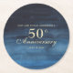 Navy Blue 50th Wedding Anniversary Round Paper Coaster