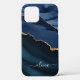 Navy Blue and Gold Foil Agate Geode Monogram Beautiful Elegant Script Name Phone case. This makes the perfect sweet 16, 13th, 15th, 16th, 18th, 21st, 30th, 40th, 50th, 60th, 70th, 80th, 90th, 100th birthday, wedding, bridal shower, anniversary, baby shower, graduation or bachelorette party gift for someone who loves a modern trendy chic style.