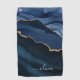Navy Blue Agate Geode Gold Monogram Golf Towel