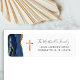 The left-hand side of this elegant modern return address label features a navy blue watercolor agate border trimmed with faux gold glitter, along with a faux gold foil cross. Customise the text with your family's name in charcoal grey handwriting script and your address in copperplate font on a white background.