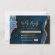 Navy Blue Agate Gold Script Wedding RSVP Card