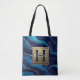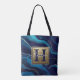 Navy Blue Agate Marble Gold Name and Monogram Tote Bag
