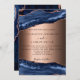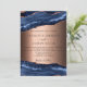 A modern and trendy wedding invitation. Blue and rose gold agate, marble stone background. Personalise and add your names and the details.