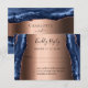 Navy blue agate marble rose gold wedding RSVP Card