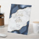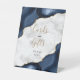 Navy Blue Agate Marble Wedding Cards and Gifts Pedestal Sign