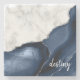This elegant coaster features a digital image of white marble and navy blue agate trimmed with silver faux glitter. Personalize it with your name in white handwriting script.