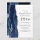 Navy Blue Agate Silver 25th Anniversary Invitation