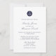 Nautical navy blue bride and groom anchor monogram wedding invitation with general introduction for bride and groom hosts: together with their families. White with navy blue block and classic script text. Back is sold navy blue. To adjust the layout, click Personalise It, Customise It Further, Edit Text, then click and drag text sections to desired locations. Use Cntrl to select and move multiple sections at once.